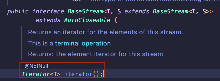 실제로 BaseStream을 열어보면 iterator메서드가 들어있다.