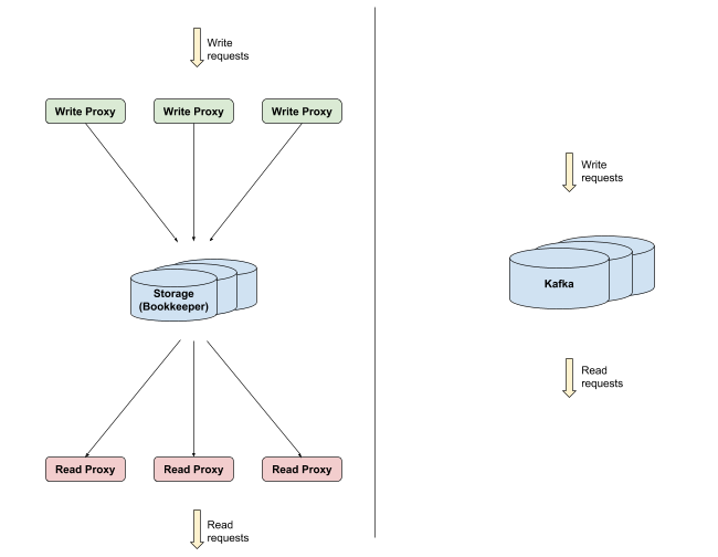 - Event Bus는 전달하는 Serving 레이어와 Storage 레이어가 분리되어 있어서 추가적인 홉이발생.