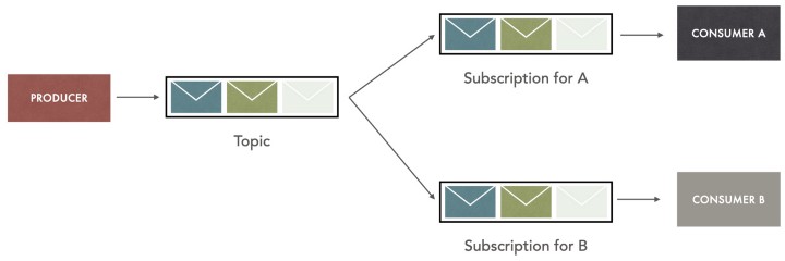 - Consumer는 Subscription에서 queue에서 message를 가져오듯 가져오게 된다.