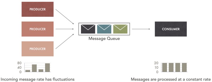 - 트래픽 급증(spike)을 완화하는 버퍼, 부하분산(로드 레벨링)의 역할을 할 수 있다.