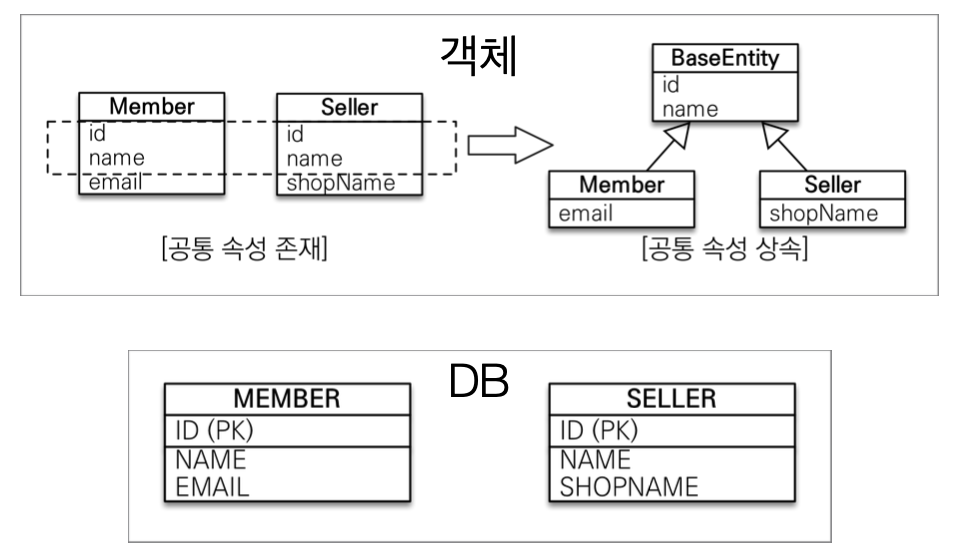 참고 : @Entity 클래스는 엔티티나 @MappedSuperclass로 지정한 클래스만 상속 가능