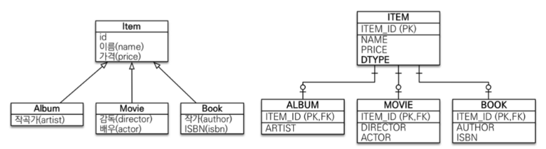 item이라는 테이블을 만들고 앨범, 영화, 책 테이블로 두고 조인으로 이 테이블을 연결하는 것
