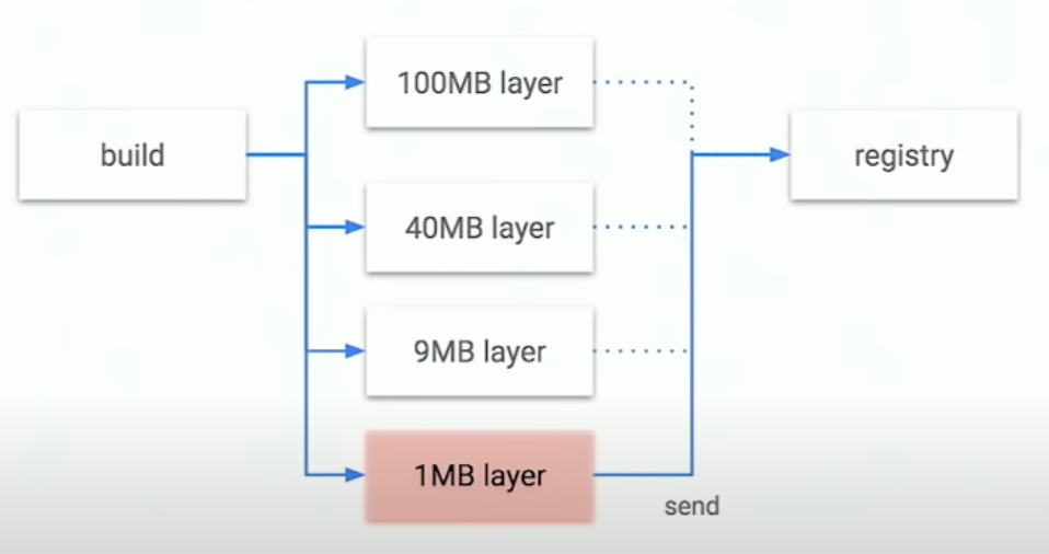 예를 들면 의존성이 변경되지 않았다면 의존성 레이어는 재빌드 되지 않고 오직 리소스나 클래스만 빌드되어 푸시됨.