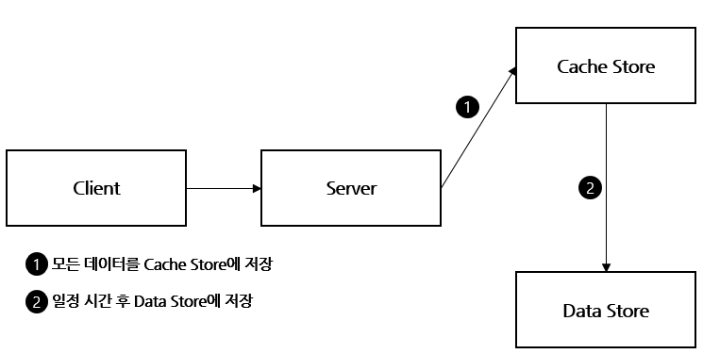 - 모든 데이터를 Cache Store에 저장한 뒤 일정 시간 후 Data Store에 저장한다.